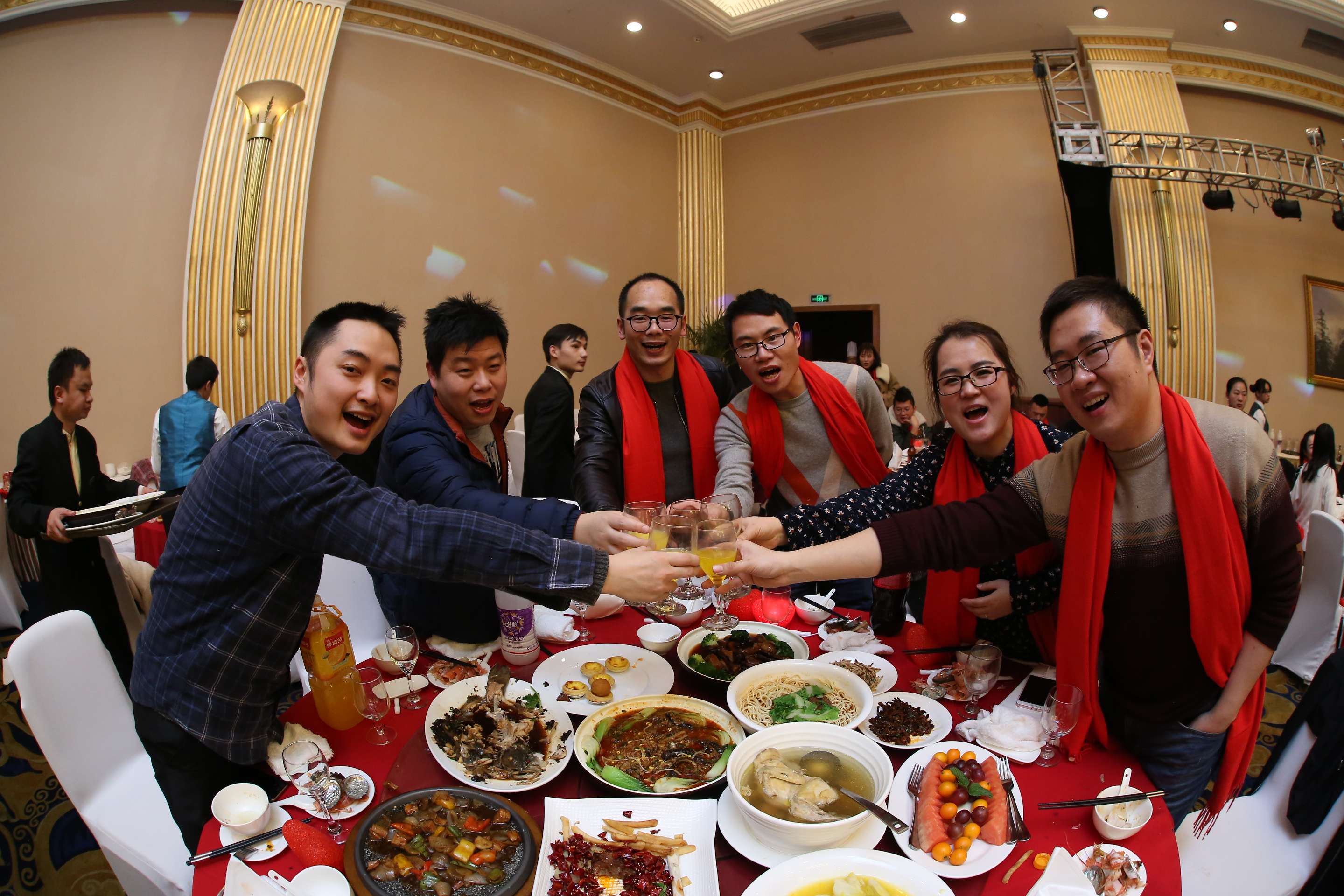 在三位副總共同舉杯致祝酒詞后,晚宴正式開始。珍饈美酒,接踵而至,領(lǐng)導(dǎo)與員工們觥籌交錯(cuò),酣暢淋漓。沒有往日嚴(yán)肅的工作氣氛,而是像朋友家人一樣把酒言歡,臉上洋溢著喜悅的笑容,這一刻我們都無(wú)比幸福。在其樂融融的氛圍下,2018年年會(huì)圓滿落下了帷幕。